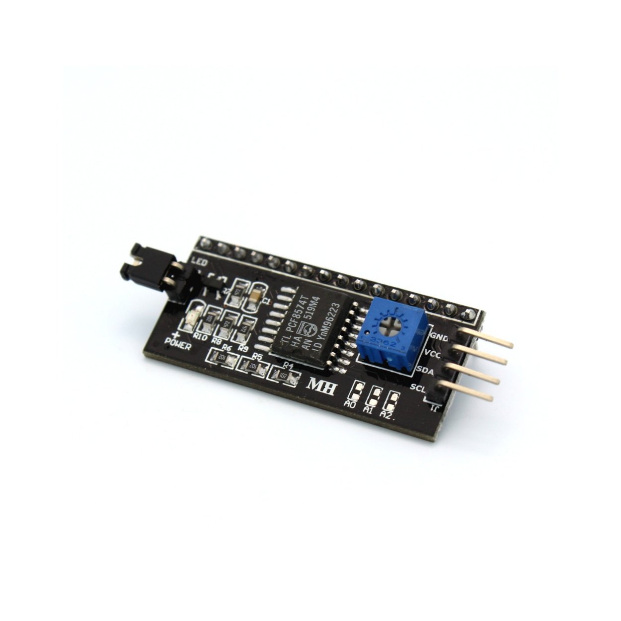 The I2C LCD Interface Module (PCF8574) is an add-on board that allows you to use 16×2 and 20×4 character LCDs with just two wires—SDA and SCL.